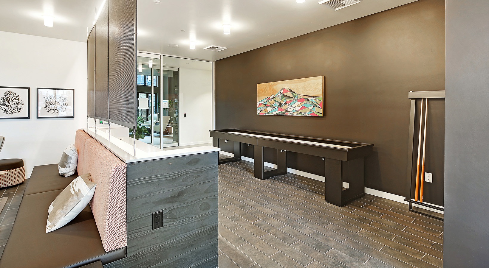 Check out the Atlas 236 Apartments that our team was proud to be a part of. The living units feature Luxury Vinyl Plank throughout, while the fabulous amenity areas showcase LVP, Italian ceramic tile backsplash, a porcelain and ceramic tile fireplace, and rubber tiles in the fitness room.